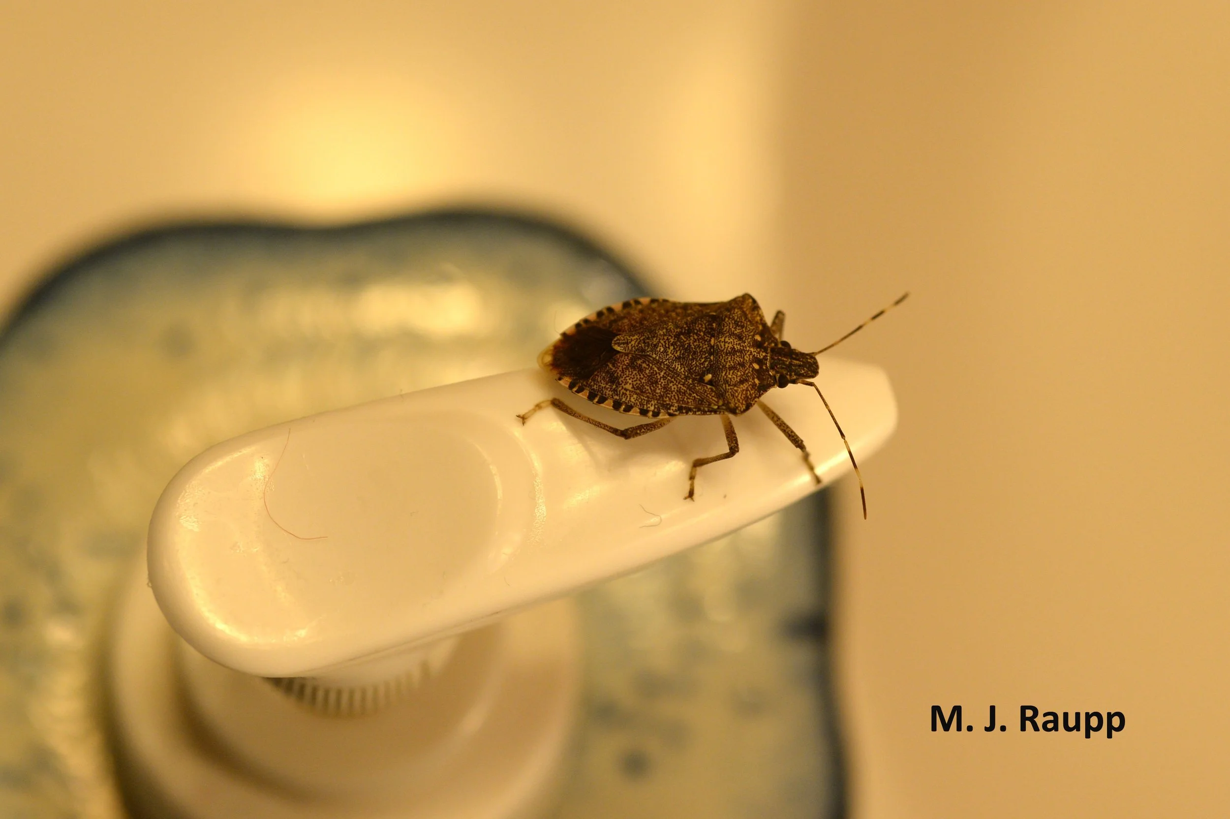 Millions of folks throughout the nation were treated to invasions of stink bugs last autumn as the horde sought refuge in homes, schools, and office buildings. Some people mistakenly believe that stink bugs enter buildings in winter to get warm, but this is not the case. In the natural world where stink bugs evolved over millions of years, there were no McMansions. Stink bugs sought winter refuge in sheltered spots beneath the bark of trees or in rocky crags. Protected from the onslaught of winter, stink bugs chilled out and entered a state akin to hibernation where their activity declined as they awaited the return of favorable temperatures and springtime food. Lengthening days and warm temperatures signal the return of leaves, flowers, and fruit. With the return of warmth and food sources, stink bugs answered Mother Nature’s wake-up call and moved from their refuges to the greening landscape. Ah, but humans build structures and provide other places for stink bugs to survive. Inside attics or beneath the siding of homes where stink bugs sheltered for the winter, warm days convince stink bugs that spring has arrived and that it is time to return to the wild to seek food and pursue the biological imperative of finding mates and reproducing. With many stink bugs wandering about, it appears that my home, like many others, proved to be an excellent choice for surviving the rigors of winter.