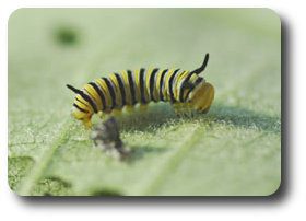 One of the true delights of the steamy summer season in Maryland is the return of the Monarch butterfly. I saw my first female monarch several weeks ago sipping nectar from a swamp-milkweed. Last autumn the great-great-grandparents of this beauty survived a dangerous and arduous migration from the eastern United States to their overwintering sites in central Mexico. During the long winter they bested predators and weather in their highland retreats. This spring, the vagabonds flew hundreds of miles from Mexico to the southern United States before finding suitable milkweed plants to serve as food for their young. The female monarch lays her eggs, usually one per plant, on the undersurface of a leaf. After several days the egg hatches and the tiny monarch caterpillar, boldly banded with yellow, black, and white stripes, begins to consume the nutritious leaves.