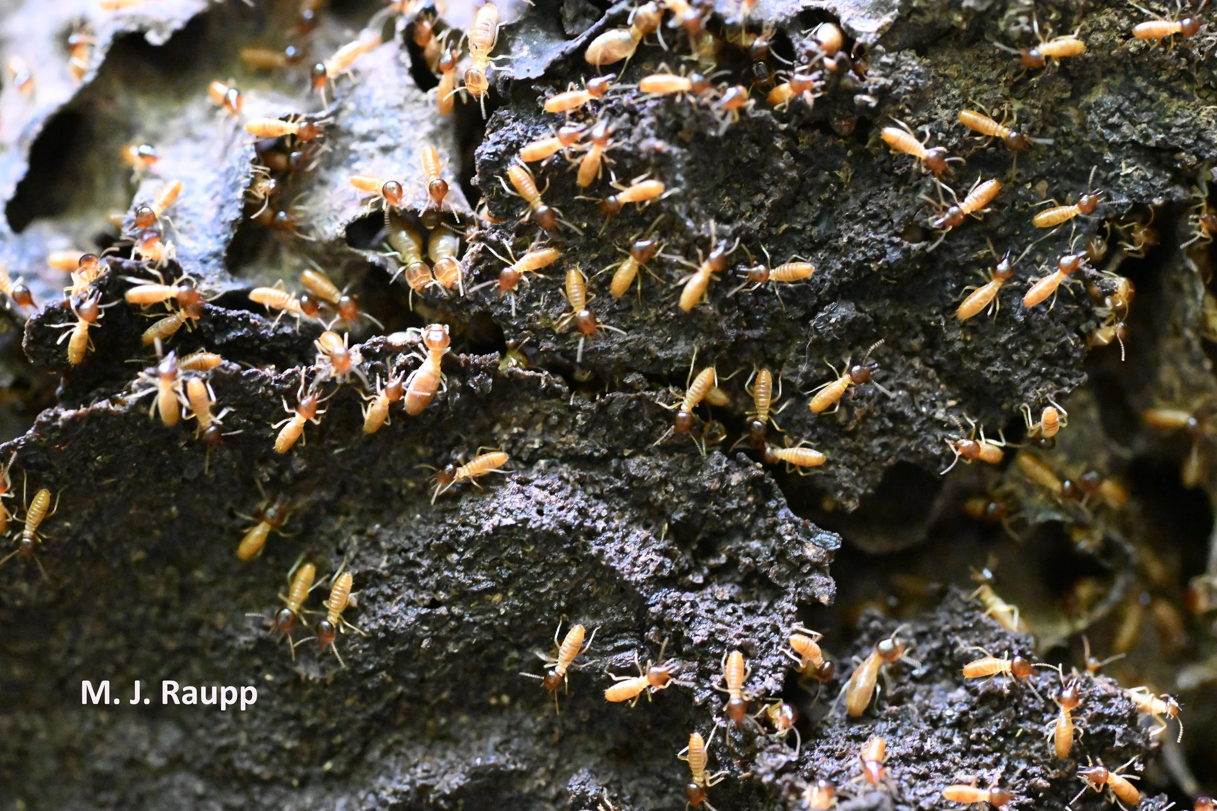 Scores of termite solders scramble to protect the colony when the outer protective shell has been breached.