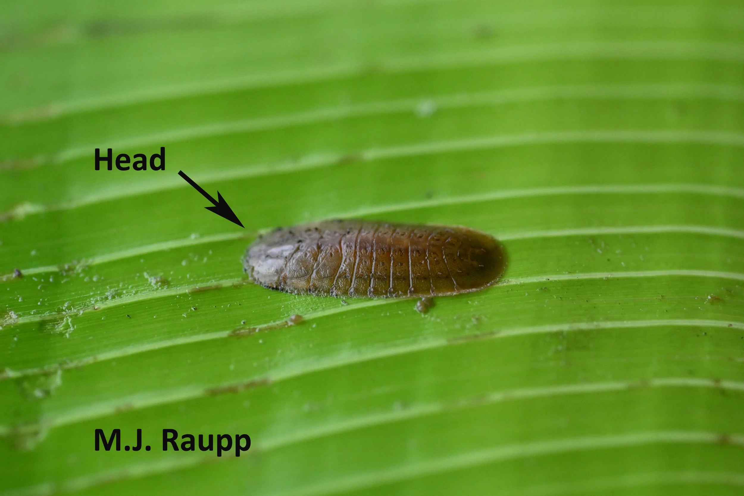 For strange rolled-leaf hispine larvae it is difficult to tell the head from the tail.