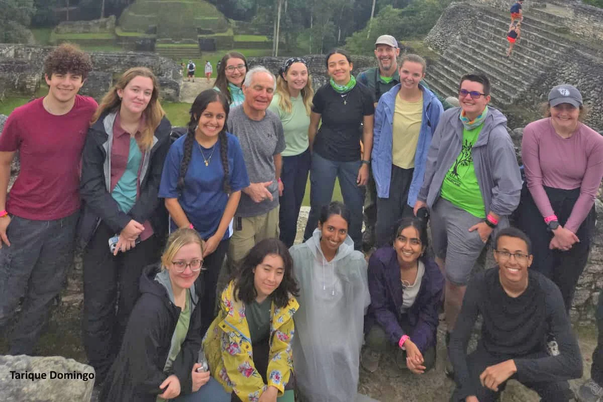 On the steps of a pyramid at Caracol, students from the University of Maryland explore the wonders of tropical rainforests and Mayan civilizations. Image: Luis Godoy